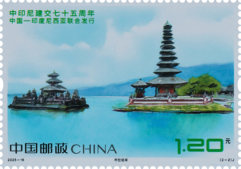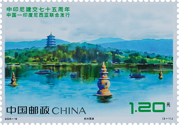 中国邮政定于2025年8月30日发行《中印尼建交七十五周年》(与印度尼西亚联合发行)纪念邮票1套2枚,邮票图案名称为:杭州西湖、布拉坦湖。全套邮票面值2.40元,计划发行数量450万套。